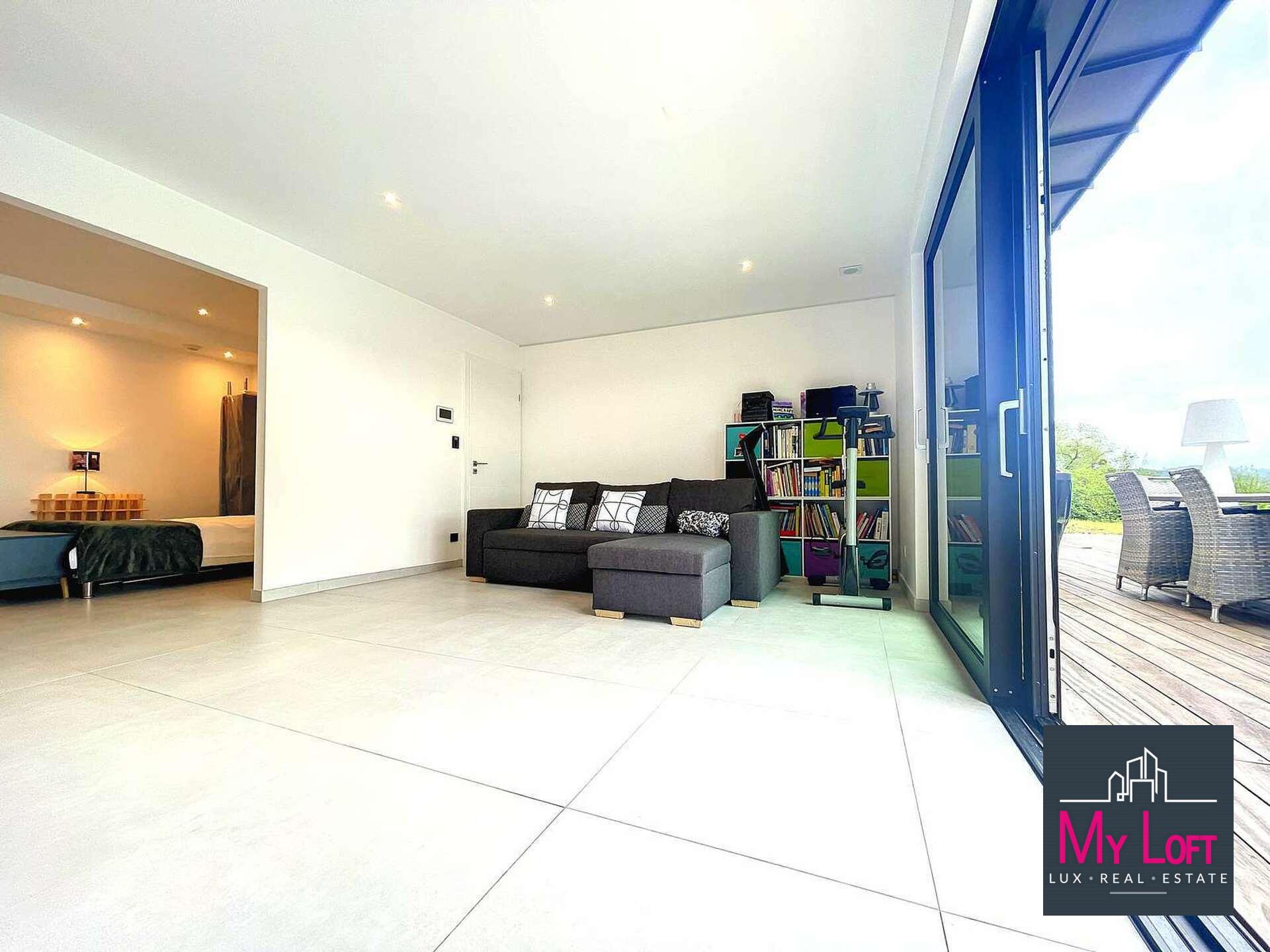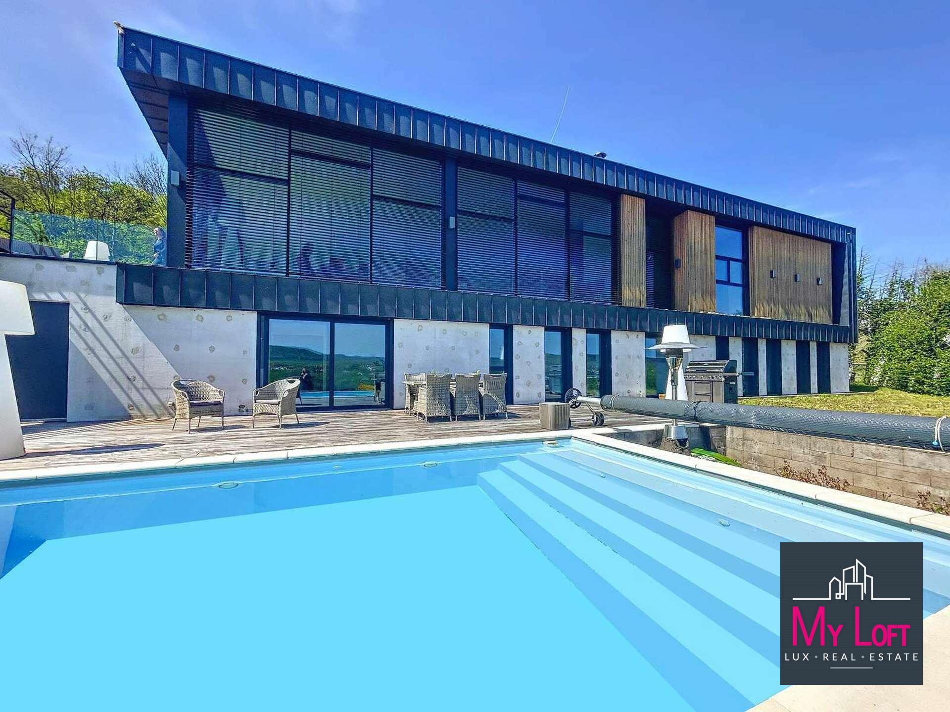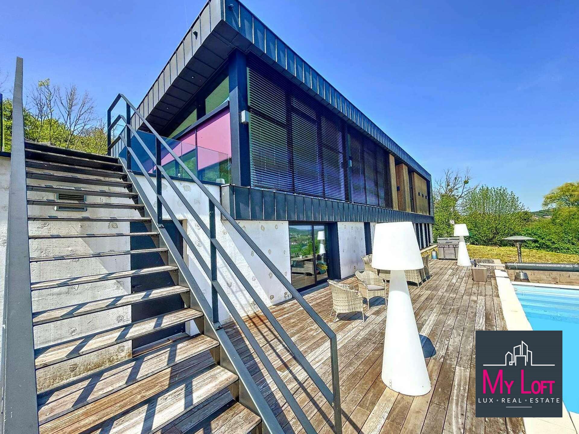 - Construction type luxembourgeoise (béton armé, agglos coffrants, bardage bois exotique, toiture zinc)
