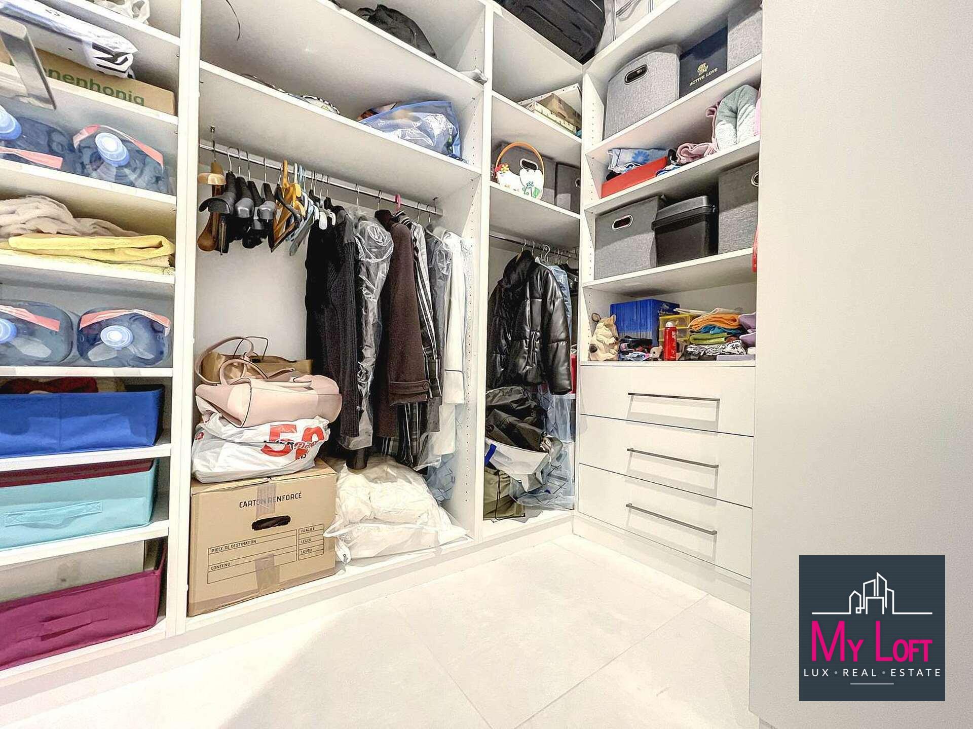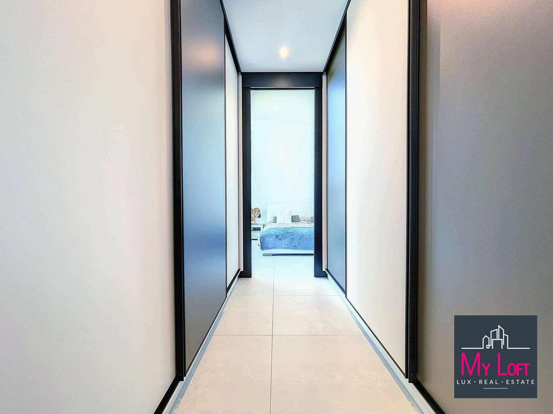 - Vaste dégagement avec rangements sur mesure et vestiaires élégamment intégrés.
