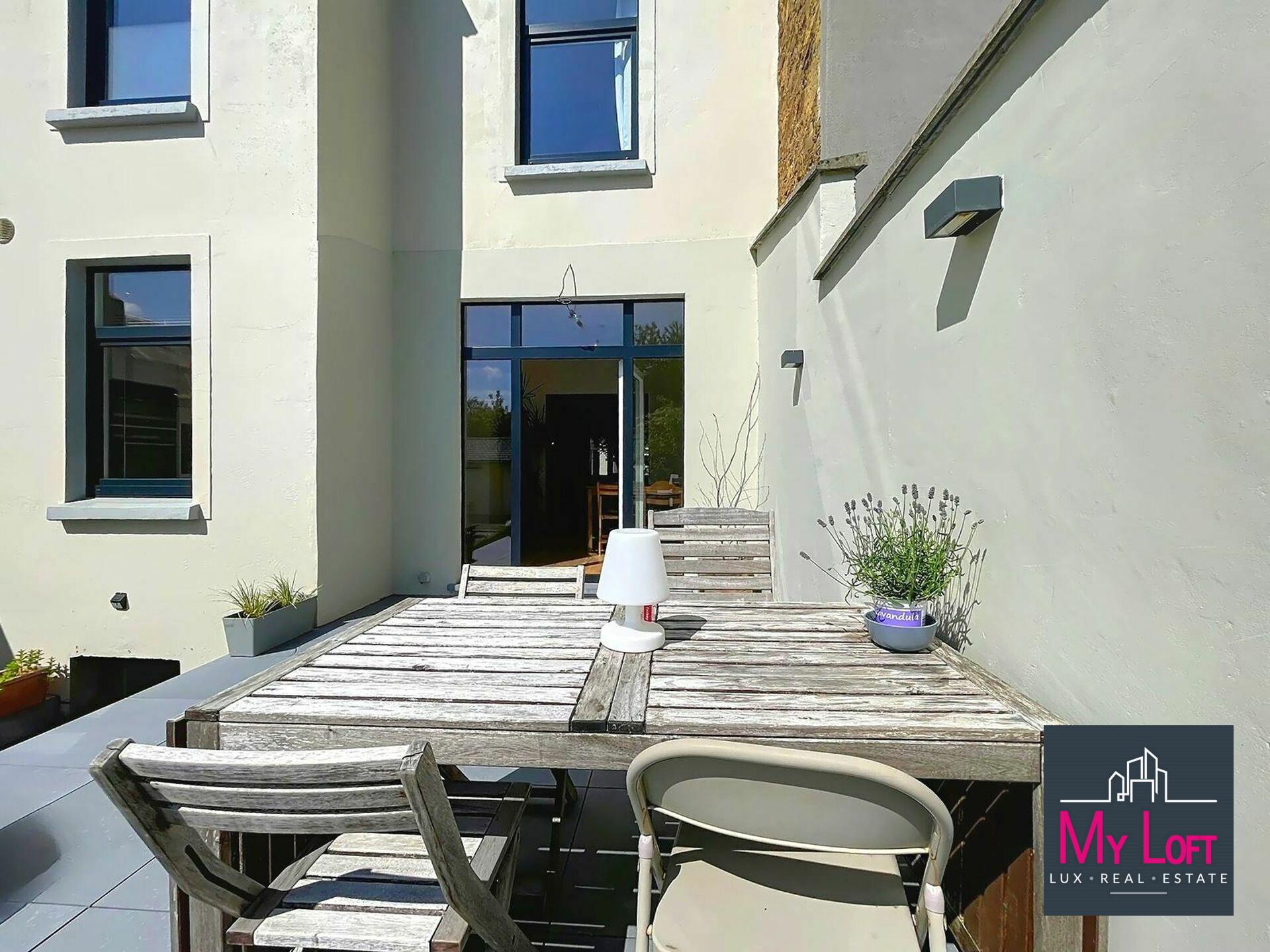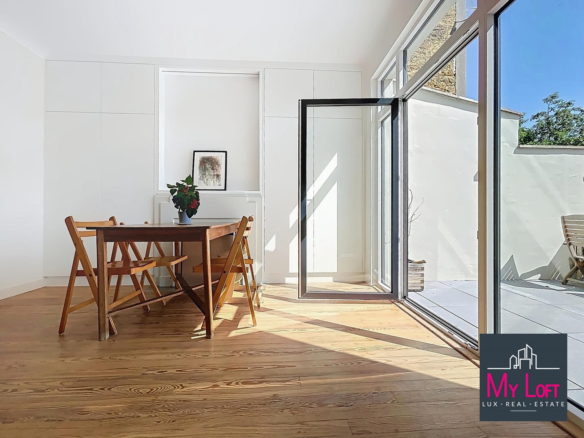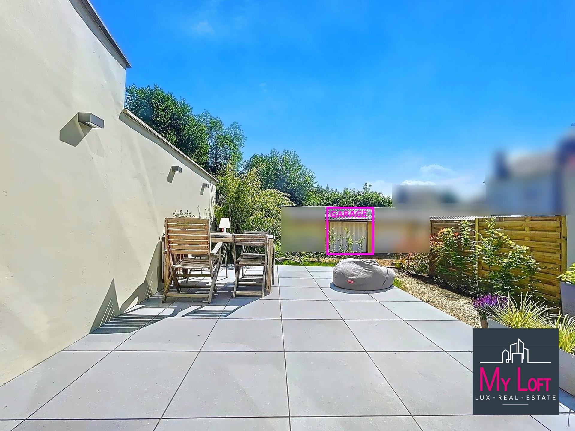 Très lumineux, cet espace de vie donne accès à une jolie terrasse habillée de dalles céram posées sur plots, et d'un petit espace de jardin, espace extérieur idéal pour profiter des beaux jours avec très peu d'entretien.