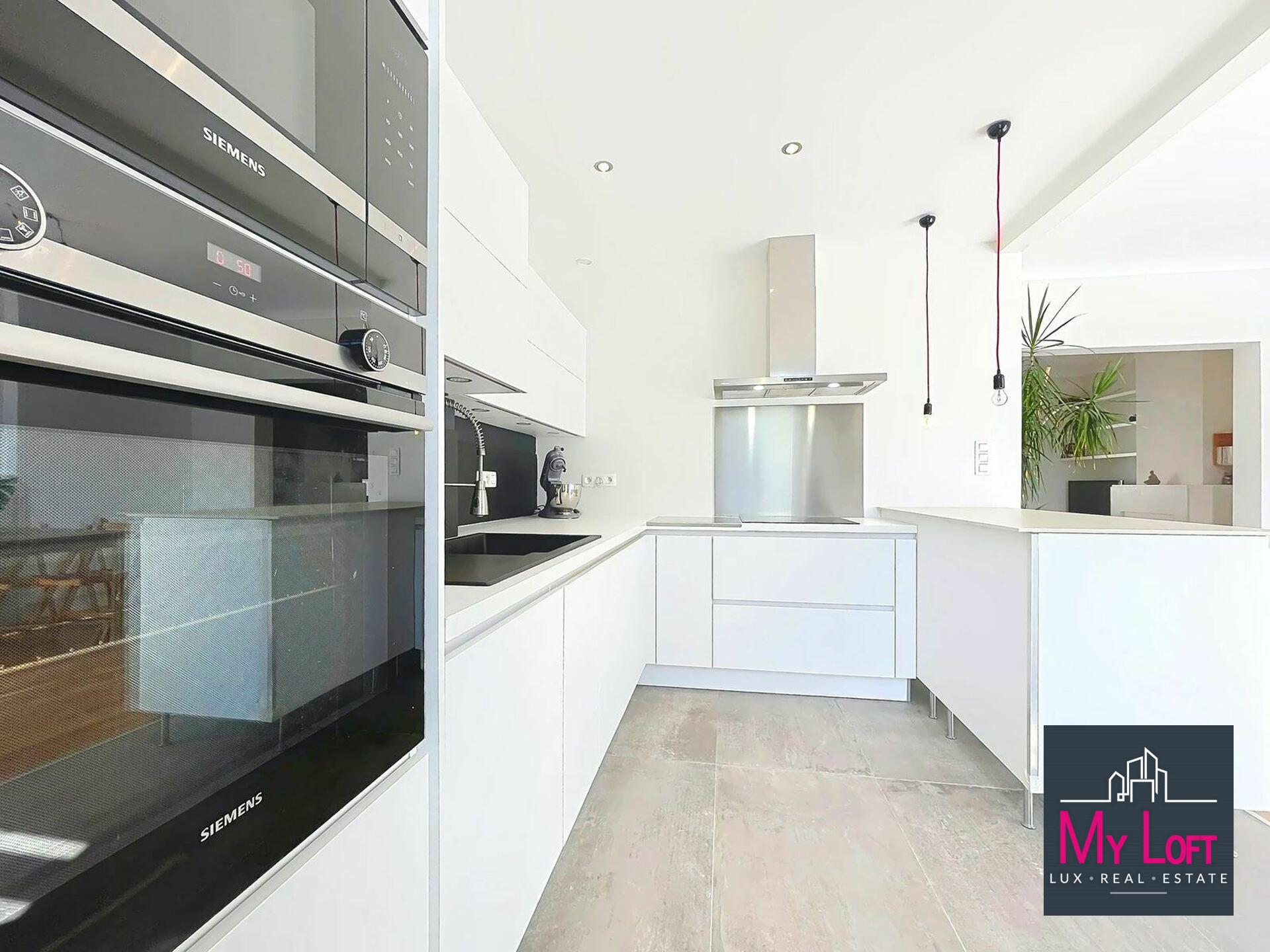 - Cuisine : +/- 9,49 m², très jolie cuisine aménagée, équipée de nombreux rangements et d'un plan de travail en céramique. Electroménager siemens