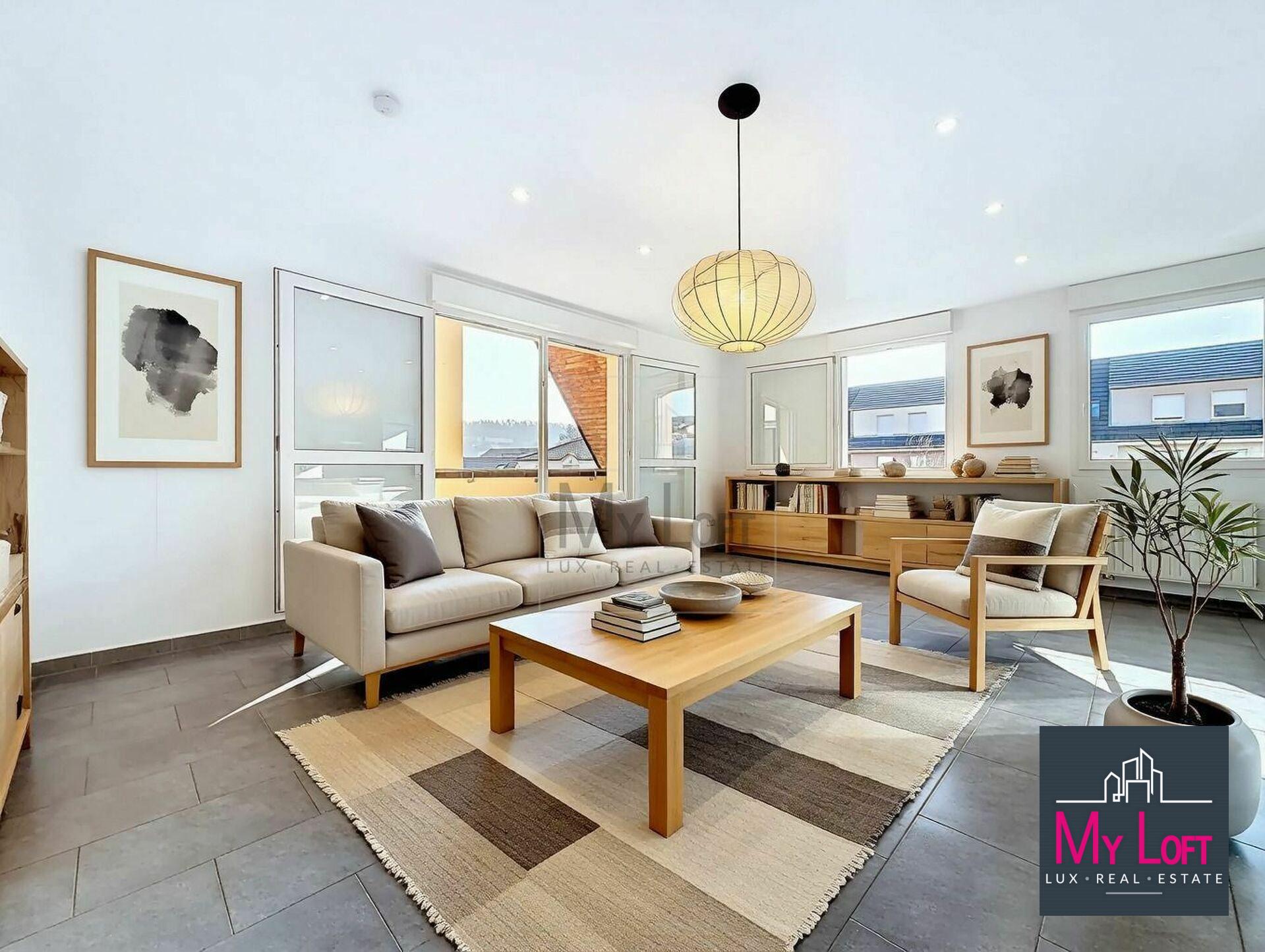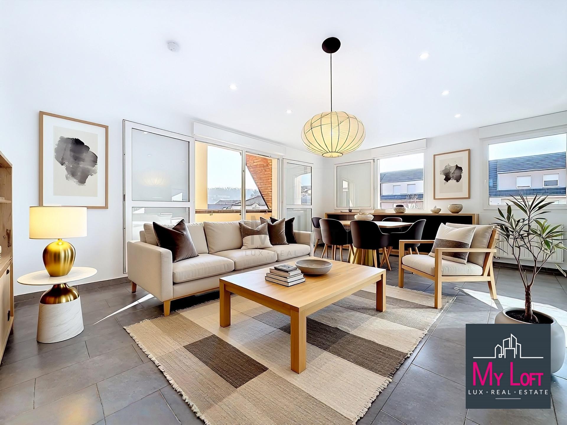 UN EMPLACEMENT STRATÉGIQUE - Accès rapide vers le Luxembourg - Proximité des grands axes autoroutiers - Commerces, écoles et services à quelques pas - Environnement agréable avec la rivière de l'Alzette à l'arrière de la résidence ________________________________________ CARACTÉRISTIQUES DU BIEN SUPERFICIE HABITABLE : 68,59 M² DISTRIBUTION DES PIÈCES : - Hall d'entrée : 3,52 m² - Spacieux living avec cuisine ouverte : 34,86 m² - Dégagement : 0,94 m² - Chambre 1 : 11,25 m² - Chambre 2 : 11,83 m² - Salle de bain : 4,84 m² - WC séparé : 1,35 m² ________________________________________ EXTÉRIEURS – VUE DÉGAGÉE - Grand balcon de 10,98 m² (accès living + 1 chambre). Sol en caillebotis neufs - Second balcon de 5,10 m² (accès seconde chambre). Sol en caillebotis neufs - Vue dégagée depuis les deux terrasses - Cadre verdoyant avec vue sur la rivière ________________________________________ ANNEXES (38,08 M² AU TOTAL) - Garage box fermé avec espace cave (+/- 22 m²). Porte motorisée - 1 emplacement de parking extérieur (+/- 13 m²) ________________________________________ PRESTATIONS & ÉQUIPEMENTS - Cuisine entièrement meublée et équipée - Électroménager neuf BOSCH - Meubles de salle de bain neufs - Meuble WC neuf - Placards encastrés dans l'entrée et les chambres - Chaudière individuelle au gaz - Résidence construite en 2010 - DPE : D ________________________________________ LES POINTS FORTS - Résidence récente - Double terrasse avec vue dégagée - Garage fermé + parking extérieur - Électroménager et équipements neufs - Proximité Luxembourg / axes autoroutiers - Disponibilité immédiate – Idéal Frontaliers