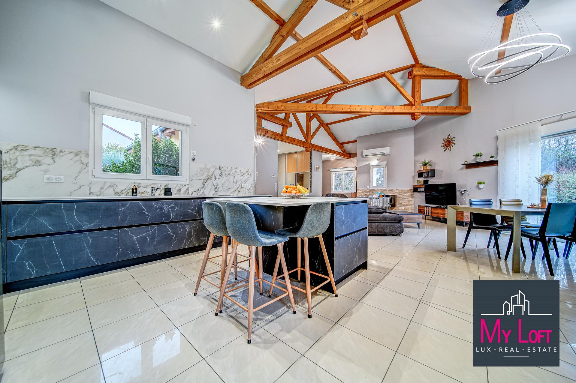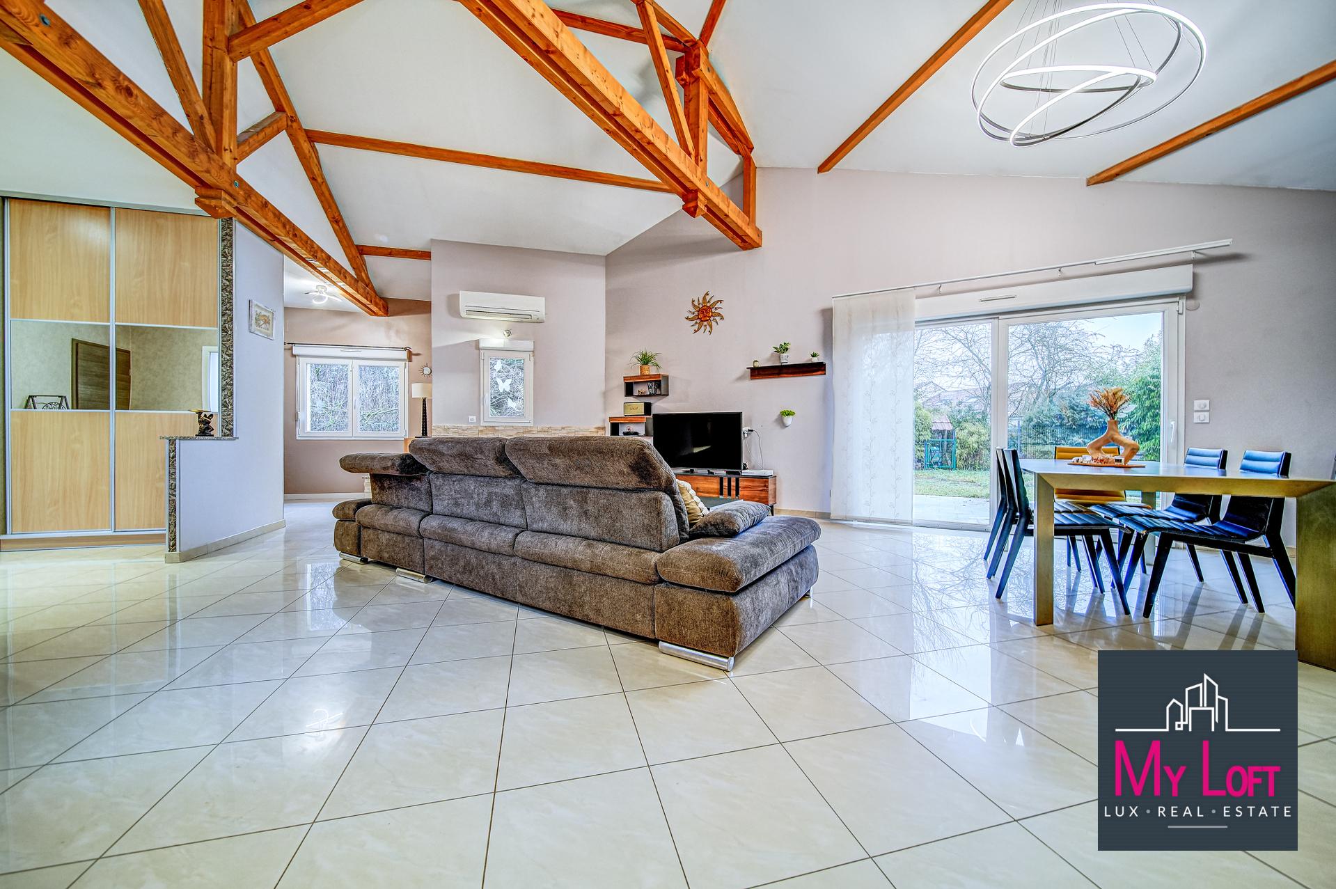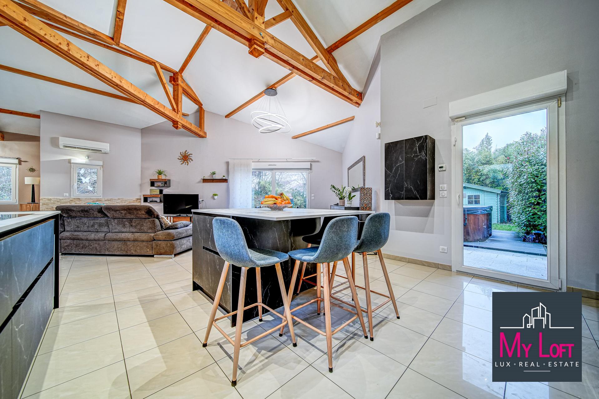Située dans un environnement résidentiel calme et recherché de Maizières-lès-Metz, à proximité immédiate des écoles, des commerces et des services, cette belle maison contemporaine de plain-pied, construite en 2007, offre des volumes généreux et des prestations de qualité.
